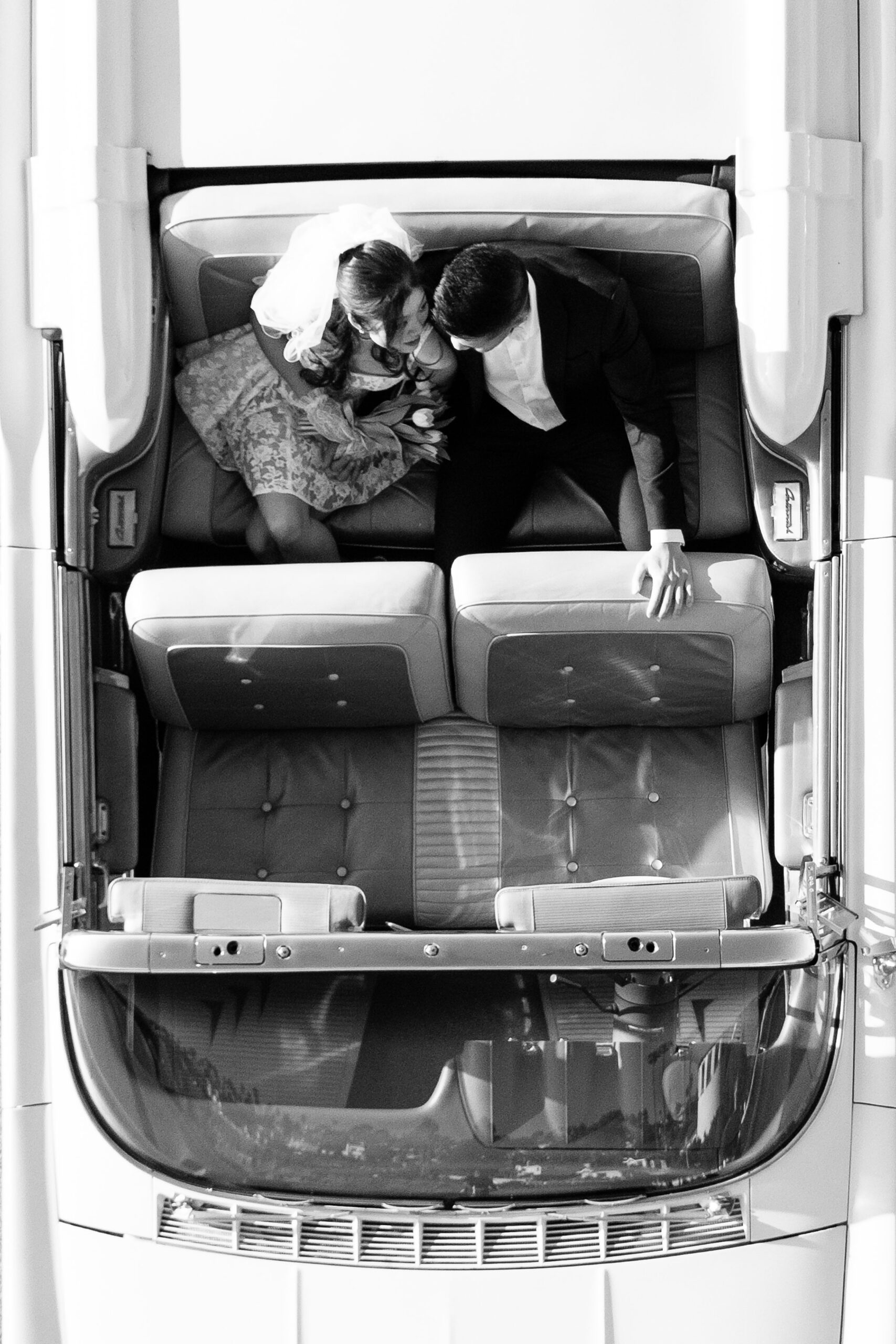 After recreating one of their first dates… we went down to the coast for the most epic and chic portraits at sunset with a classic car. The perfect ending to their San Diego Engagement Session!