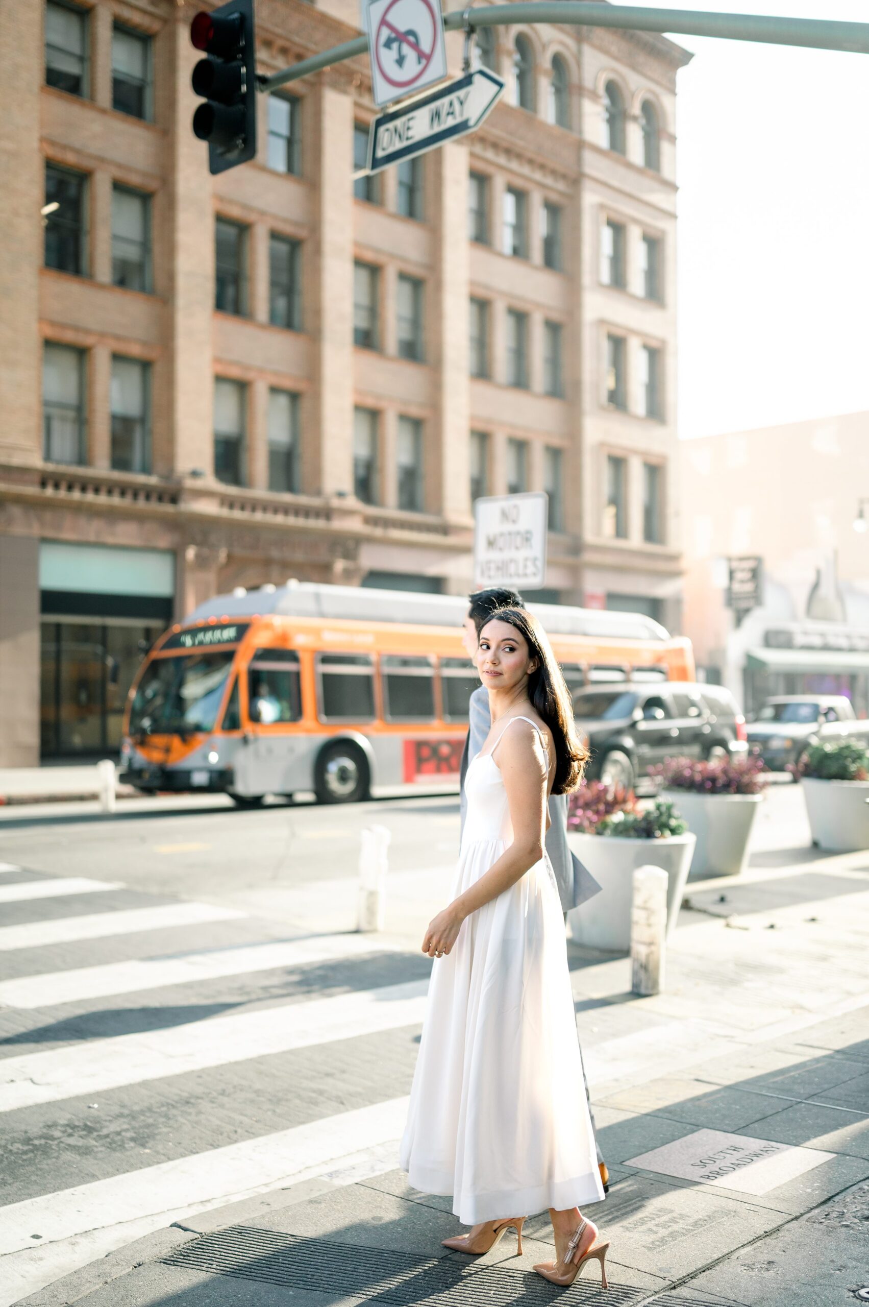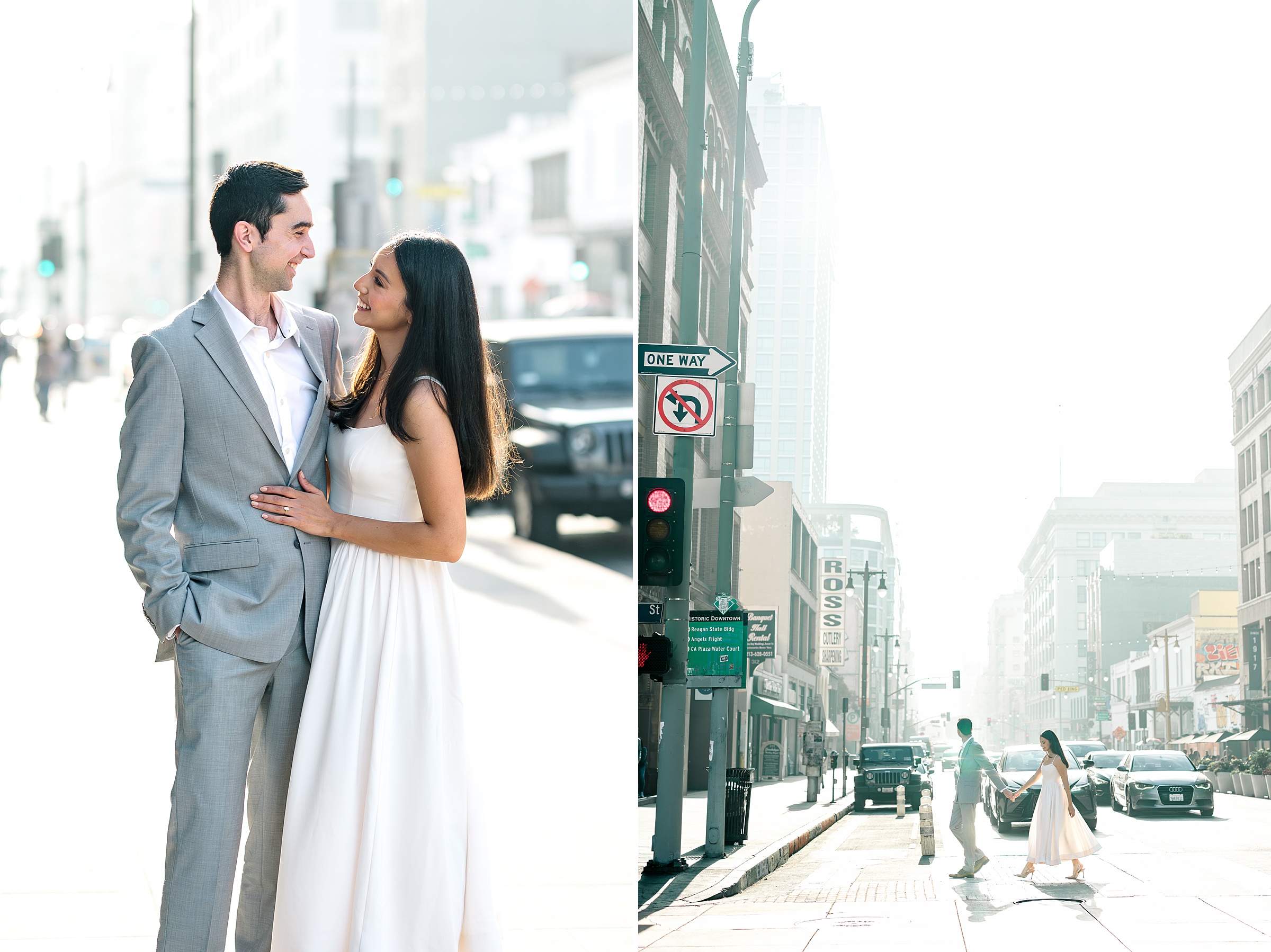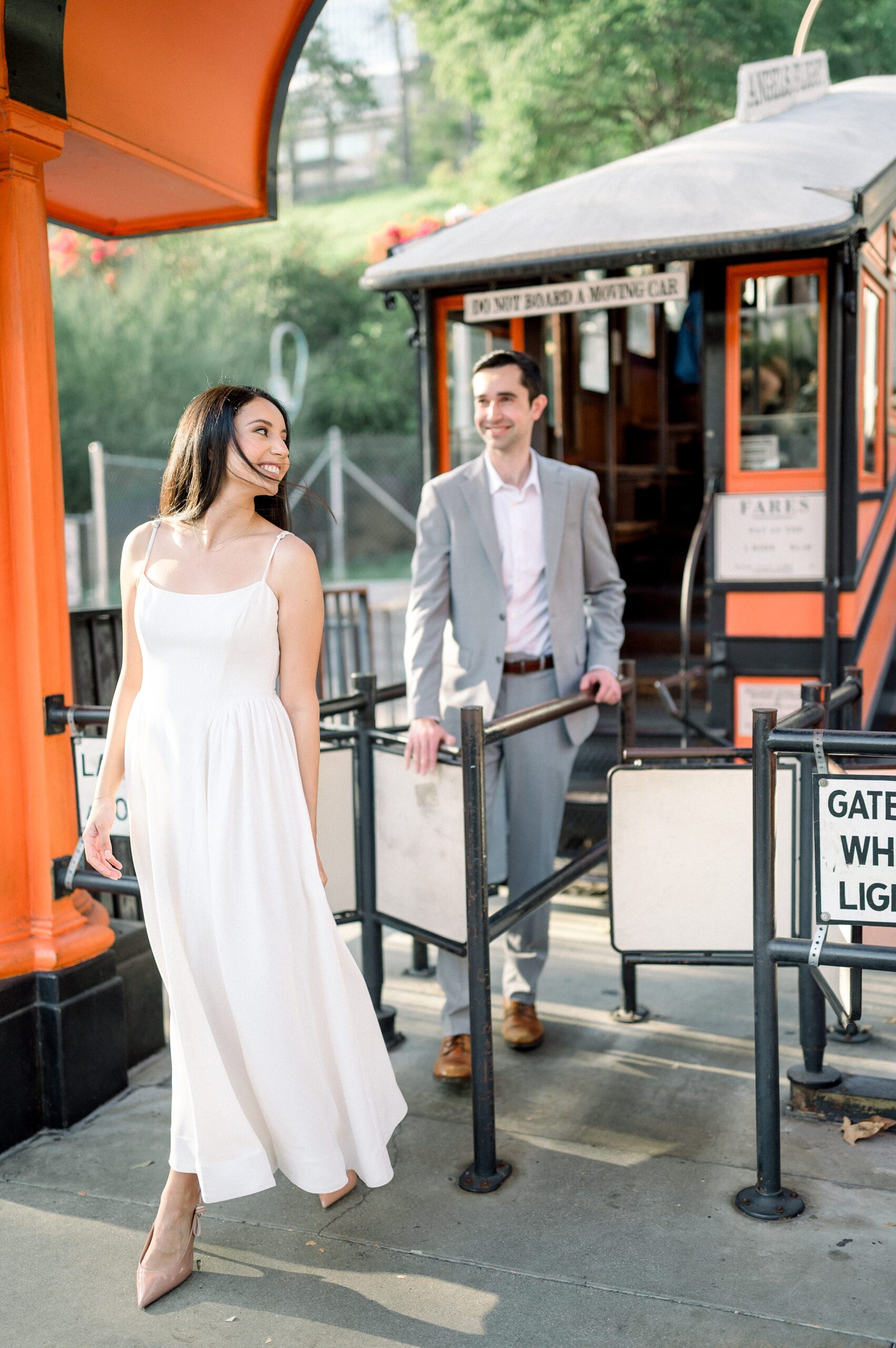 Angel’s Flight added a classic DTLA element to the gallery. The steep incline, bold railcars, and city views provided strong visual structure while still allowing space for simple, unposed moments. The location felt iconic without taking focus away from Ana and Bryan.