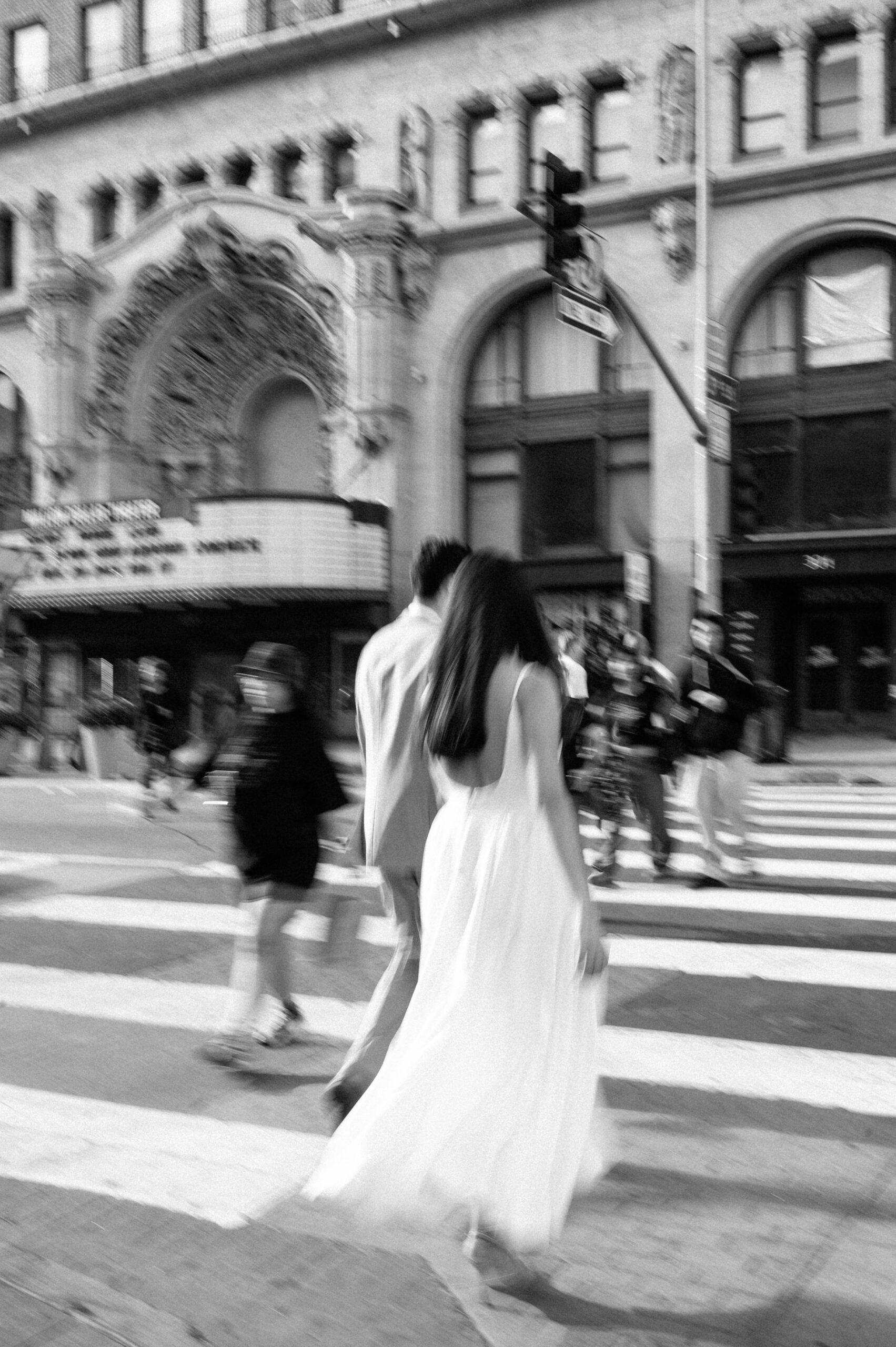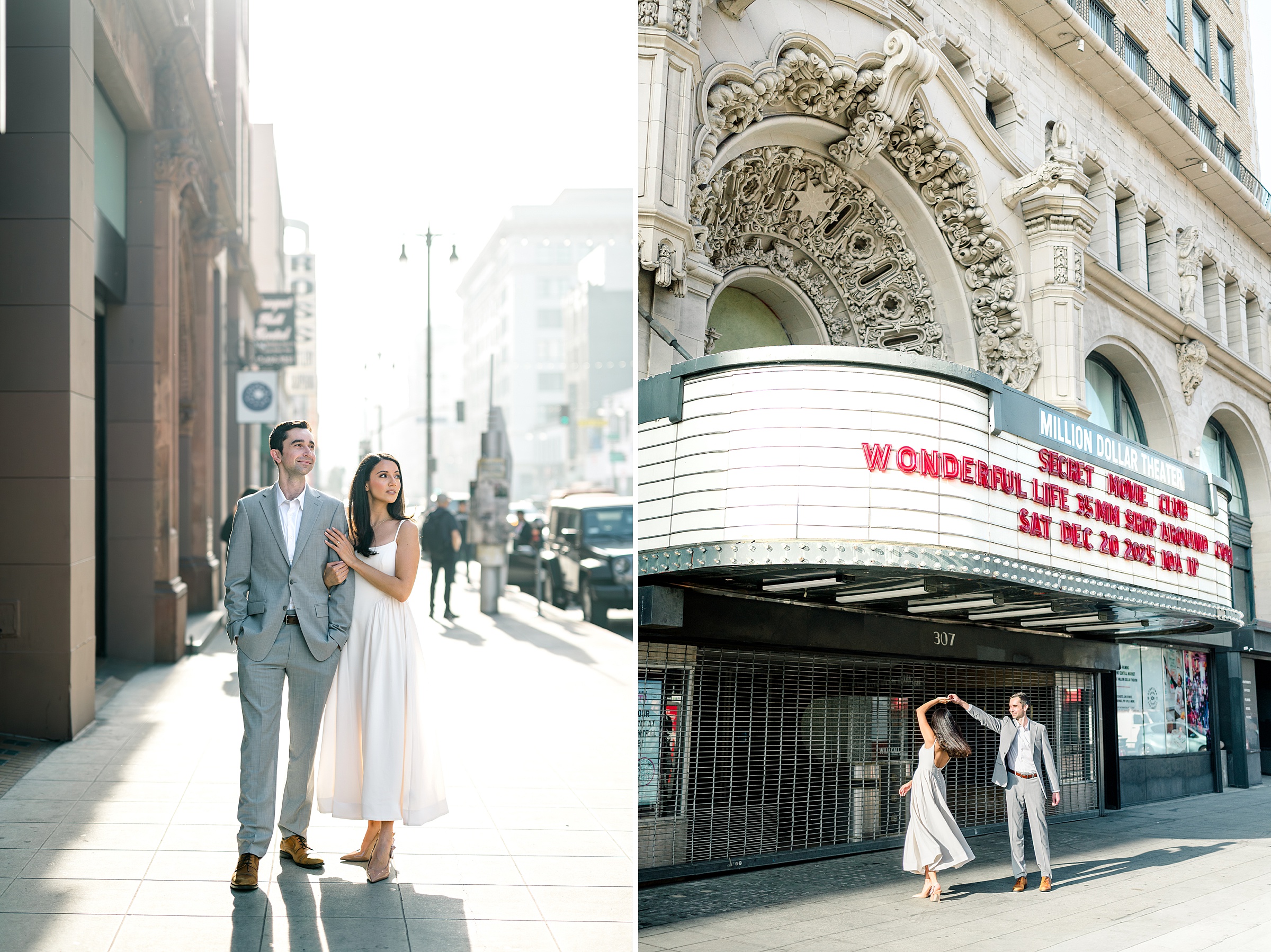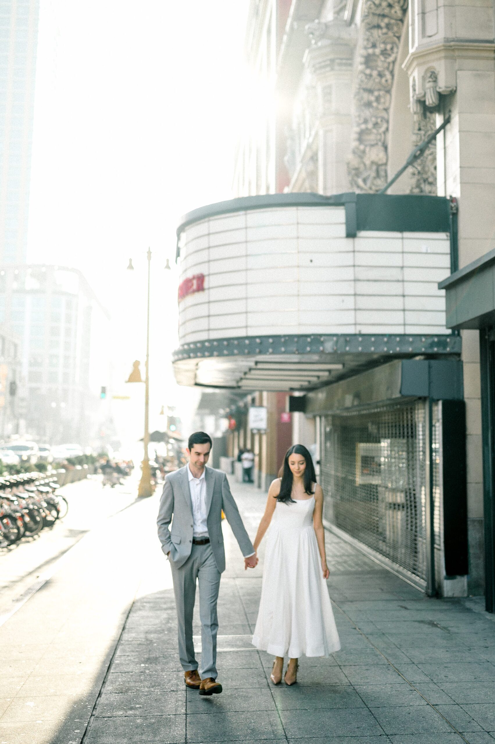 The first portion of the session focused on the historic architecture and street textures surrounding the theater. The vintage marquee and movement of the city created a timeless backdrop while keeping the session relaxed and natural.