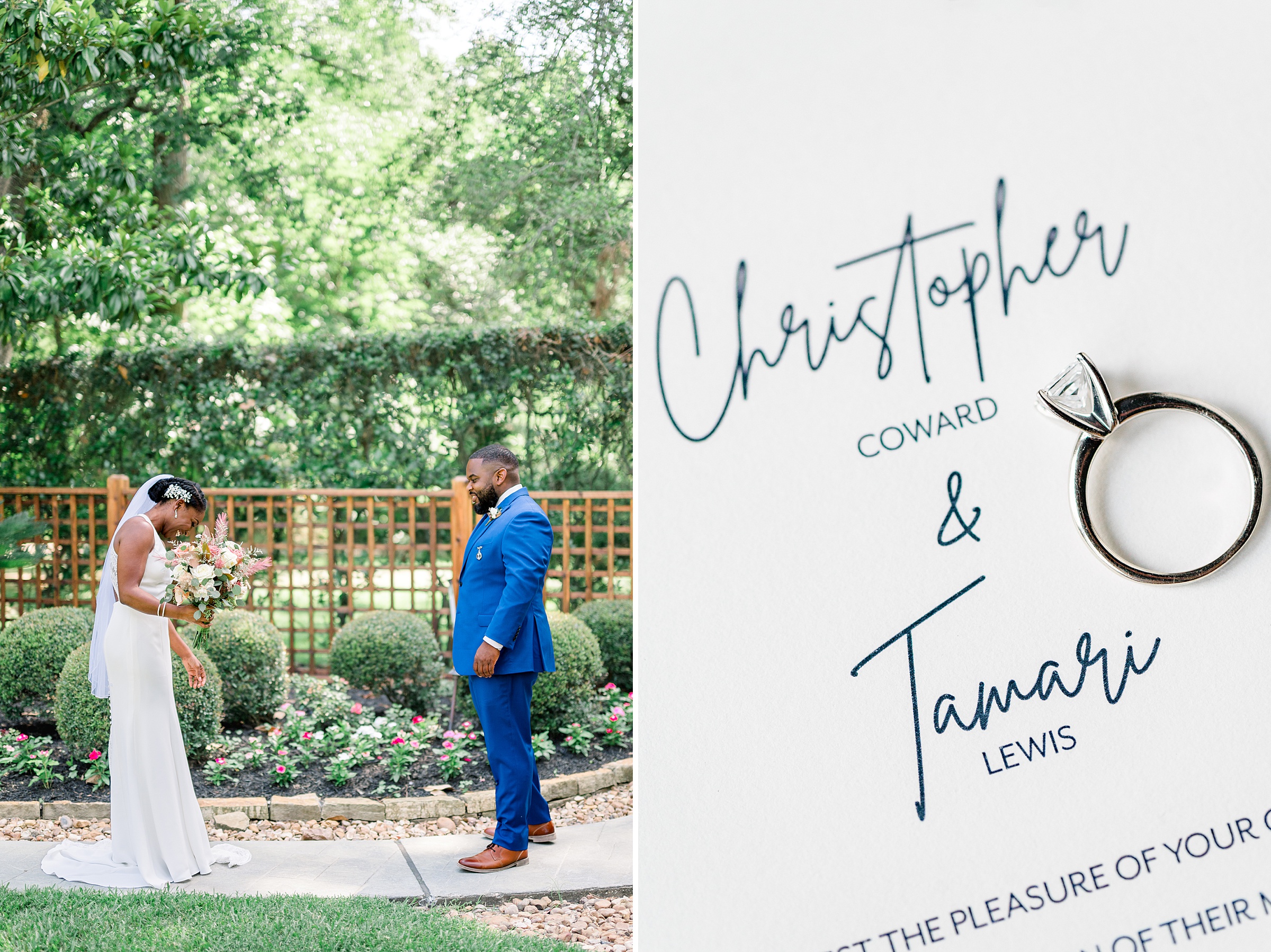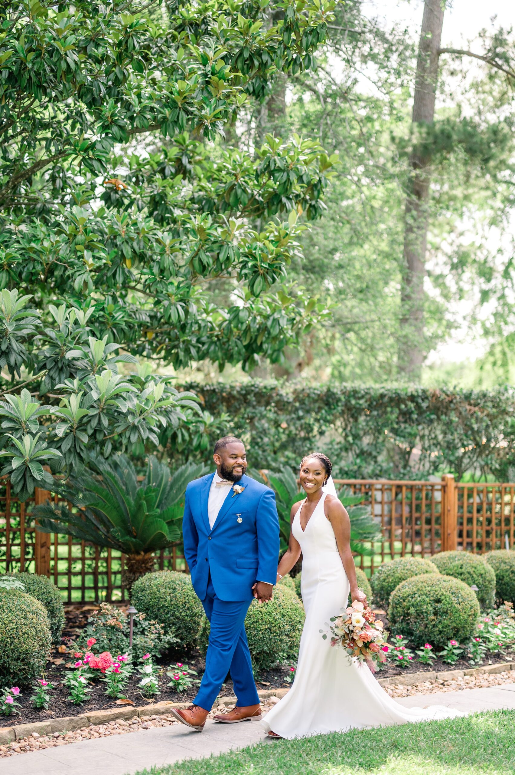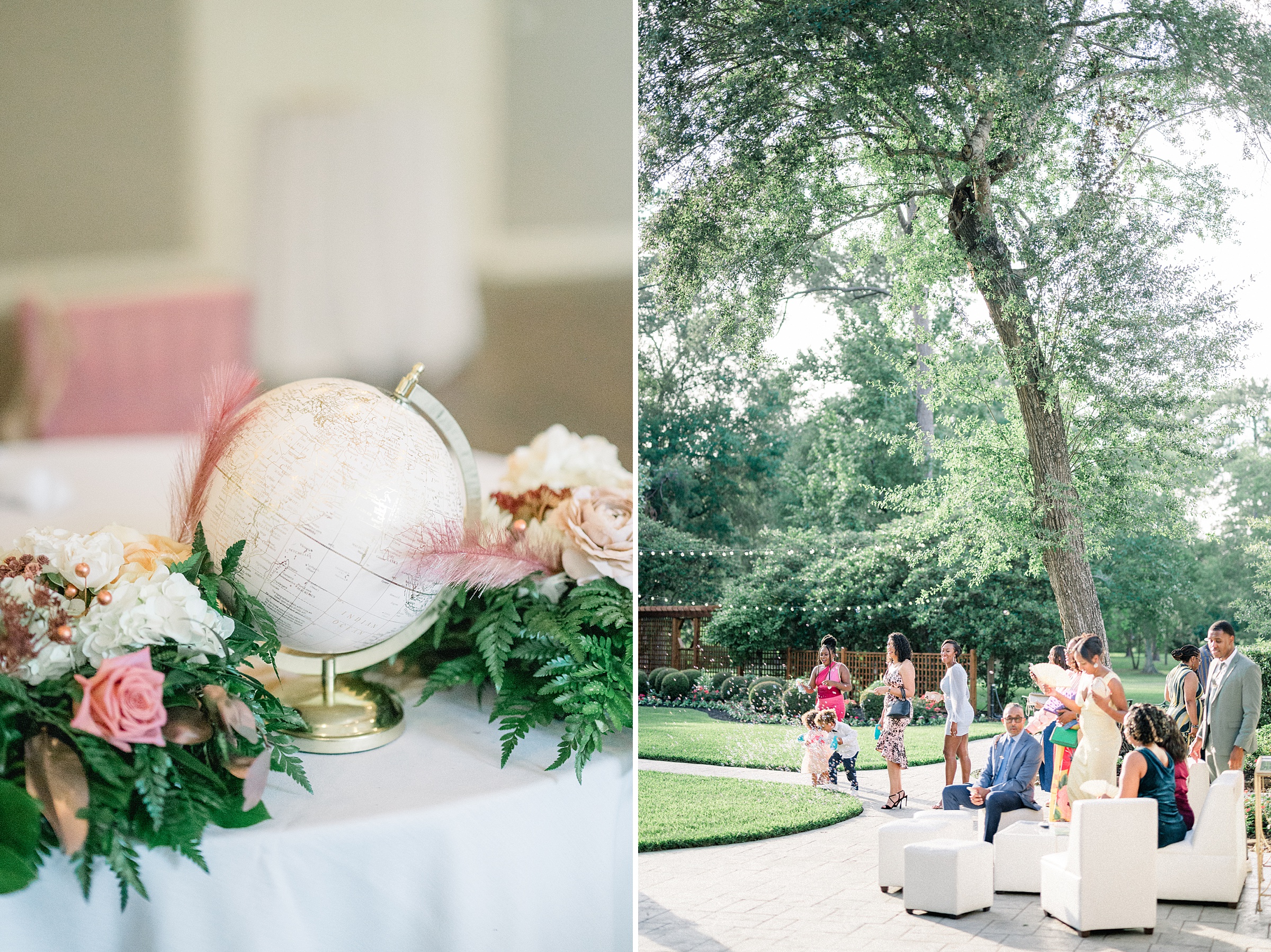 Their Shirley Acres Wedding had spring vibes, with touches of travel-inspired decor throughout. Each guest was seated at tables named after a city Tamari and Chris had traveled to, and each guest was gifted a luggage tag for their next travel adventures! Most of their guests flew into Houston for their big day, so it was the perfect gift.