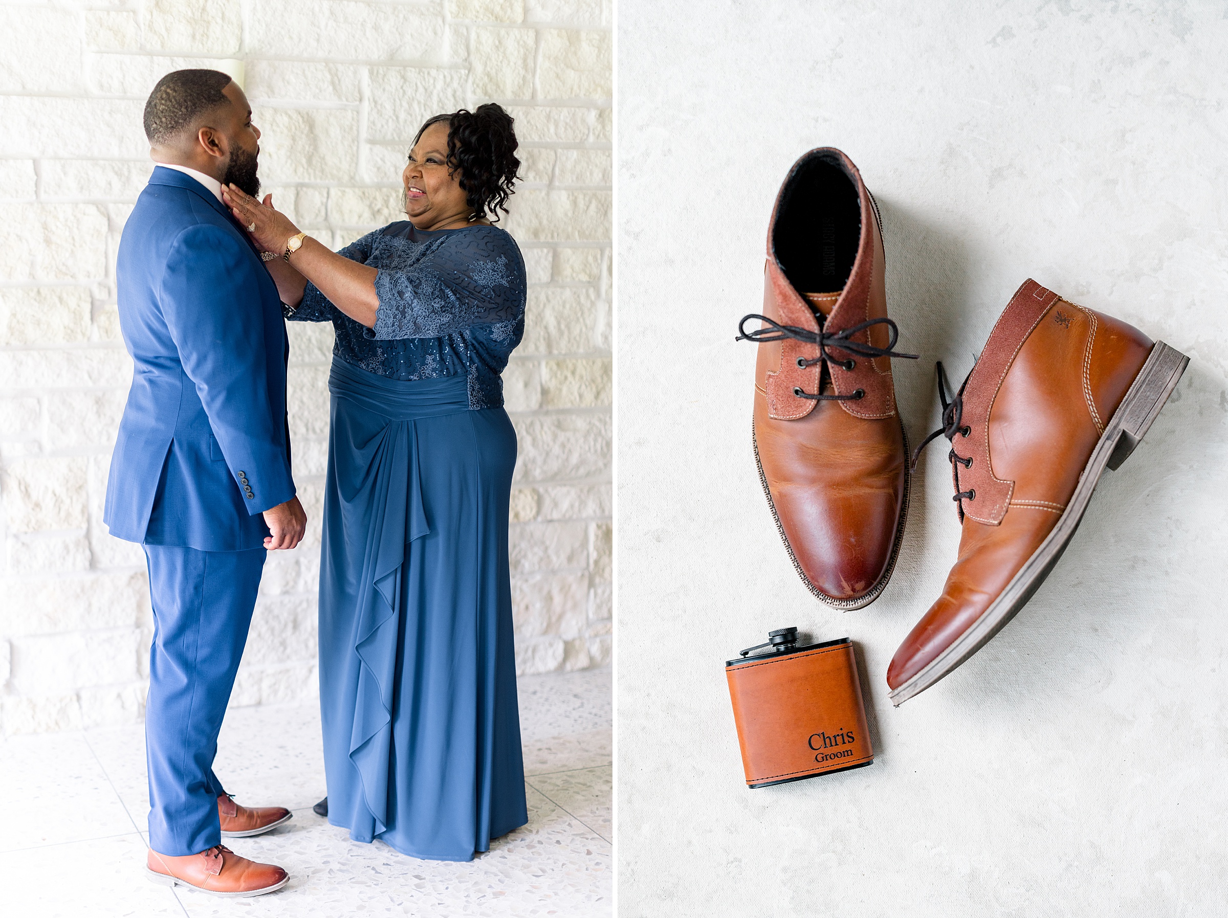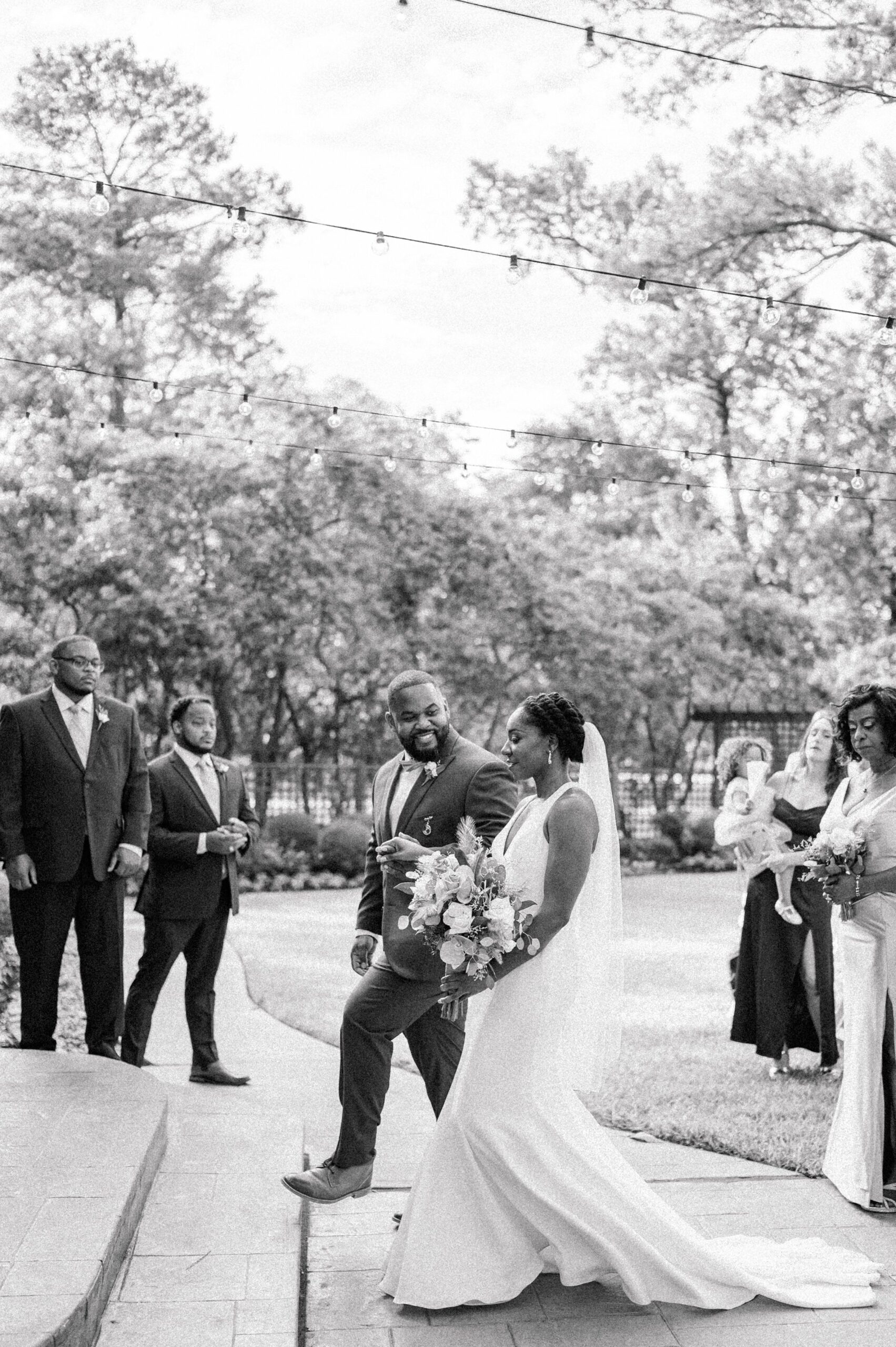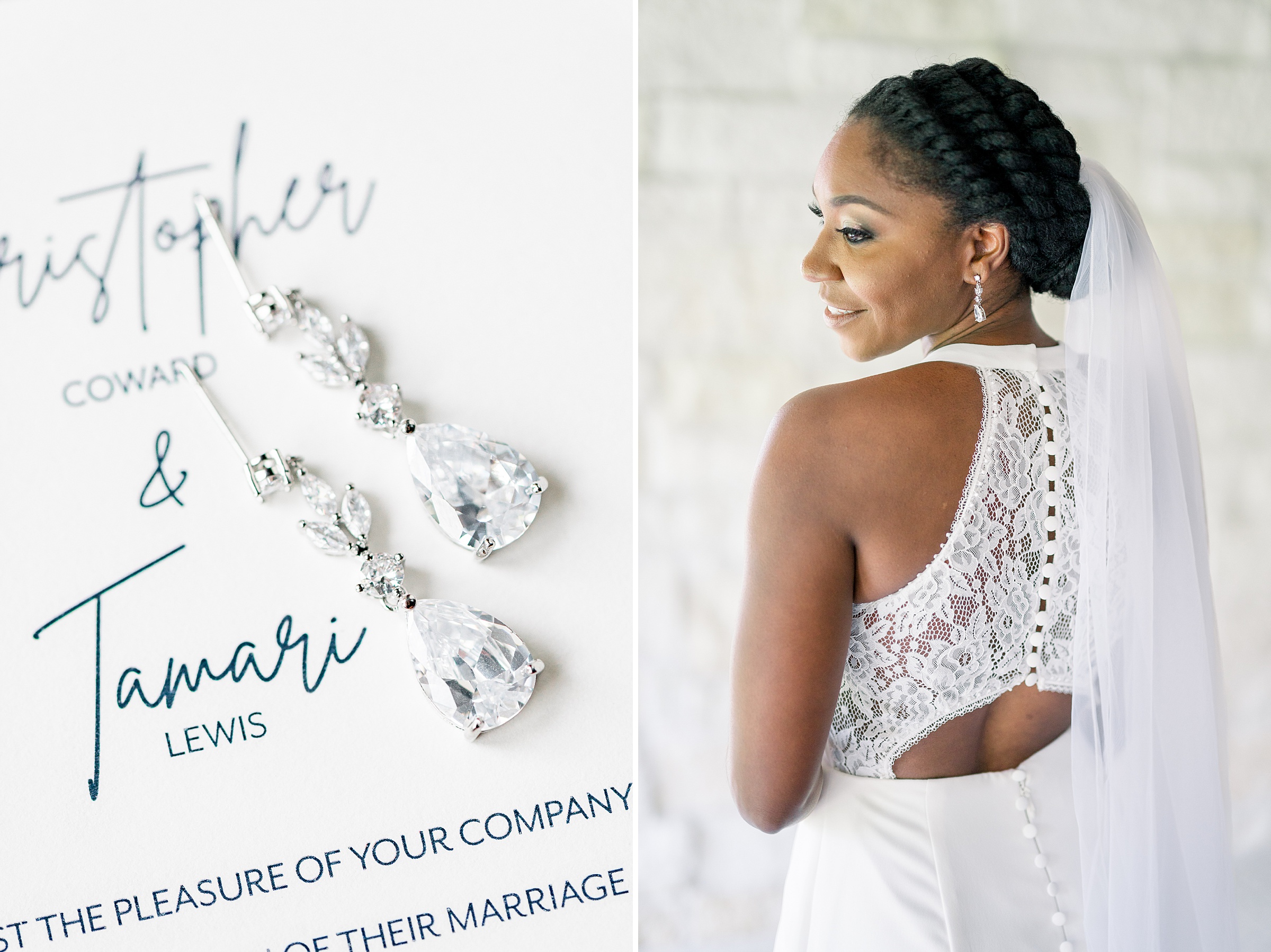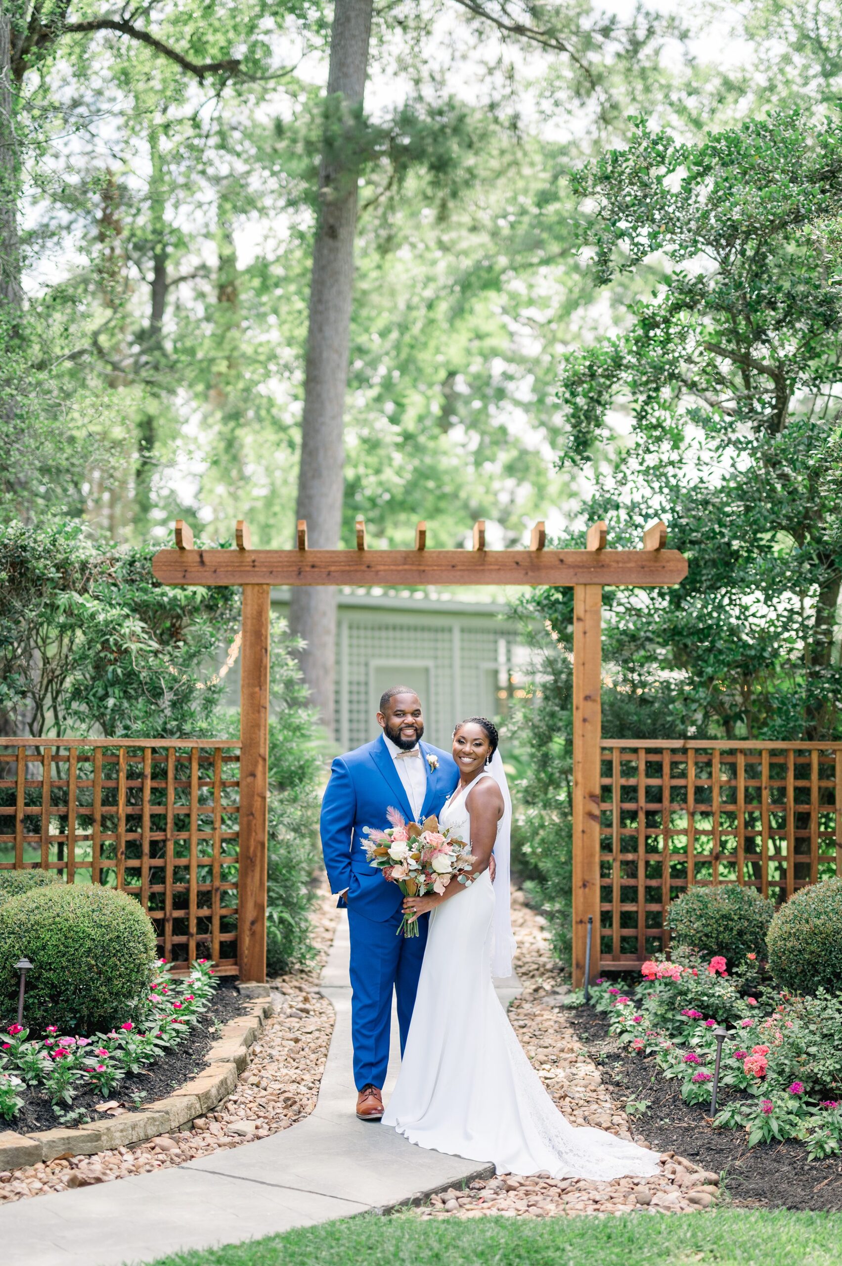 Their Shirley Acres Wedding had spring vibes, with touches of travel-inspired decor throughout. Each guest was seated at tables named after a city Tamari and Chris had traveled to, and each guest was gifted a luggage tag for their next travel adventures! Most of their guests flew into Houston for their big day, so it was the perfect gift.